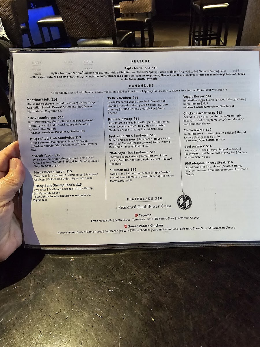 Located in the heart of Heritage Crossing Plaza, 35 Brix Menu offers a delightful variety of dishes designed to please any palate. Whether you're stopping by for a quick bite or settling in for a leisurely meal, the menu here is packed with delicious options that bring comfort and creativity together. From fresh, vibrant salads to rich, flavorful pastas, there's something for everyone. Pair your meal with a choice from their wide selection of beverages, each carefully curated to complement the flavors of the dishes. If you're in the mood for something sweet, don’t miss out on their decadent desserts, perfect for wrapping up a satisfying meal. Each dish is crafted with care, bringing together the best ingredients to ensure a memorable dining experience every time you visit.